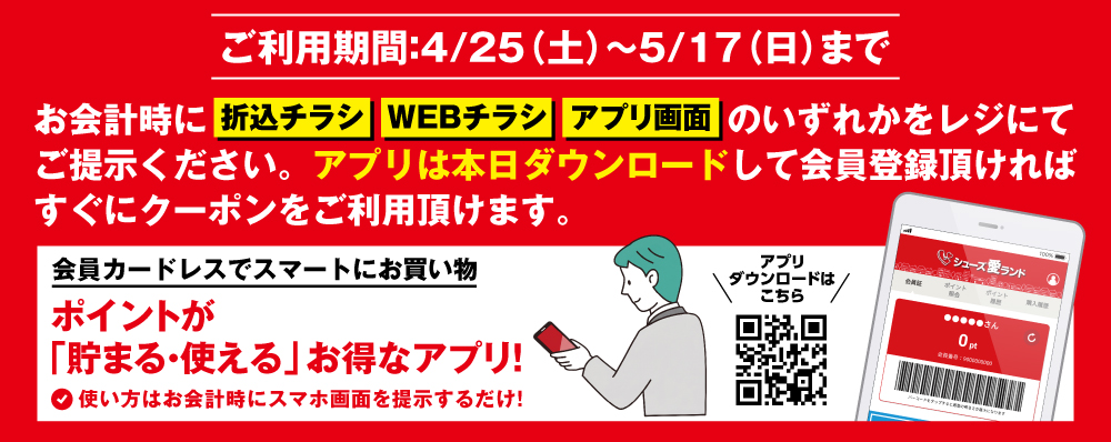 クーポンは会員アプリで配信中♪